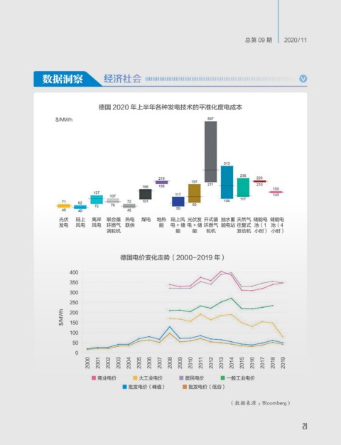 德国 2020 年上半年各种发电技术的平准化度电成本