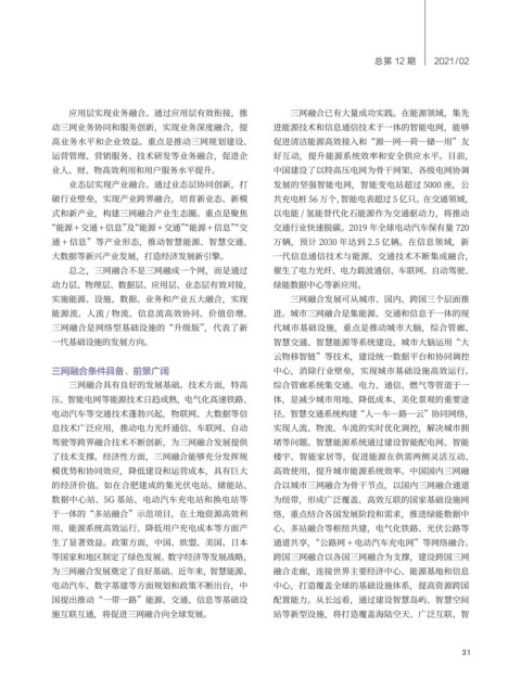 式和新产业,构建三网融合产业生态圈。重点是聚焦 以电能 / 氢能替代化石能源作为交通驱动力,将推动